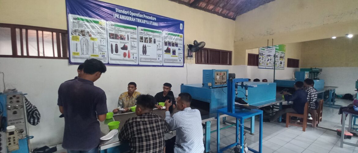 pola-pola bahan baku yang telah dipotong di cutting process kemudian dijahit yang kemudian dibentuk menjadi upper sepatu
