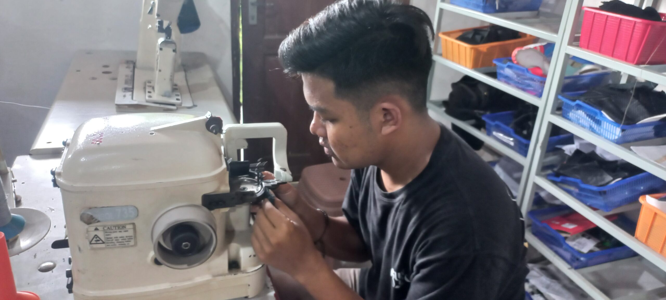 pola-pola bahan baku yang telah dipotong di cutting process kemudian dijahit yang kemudian dibentuk menjadi upper sepatu
