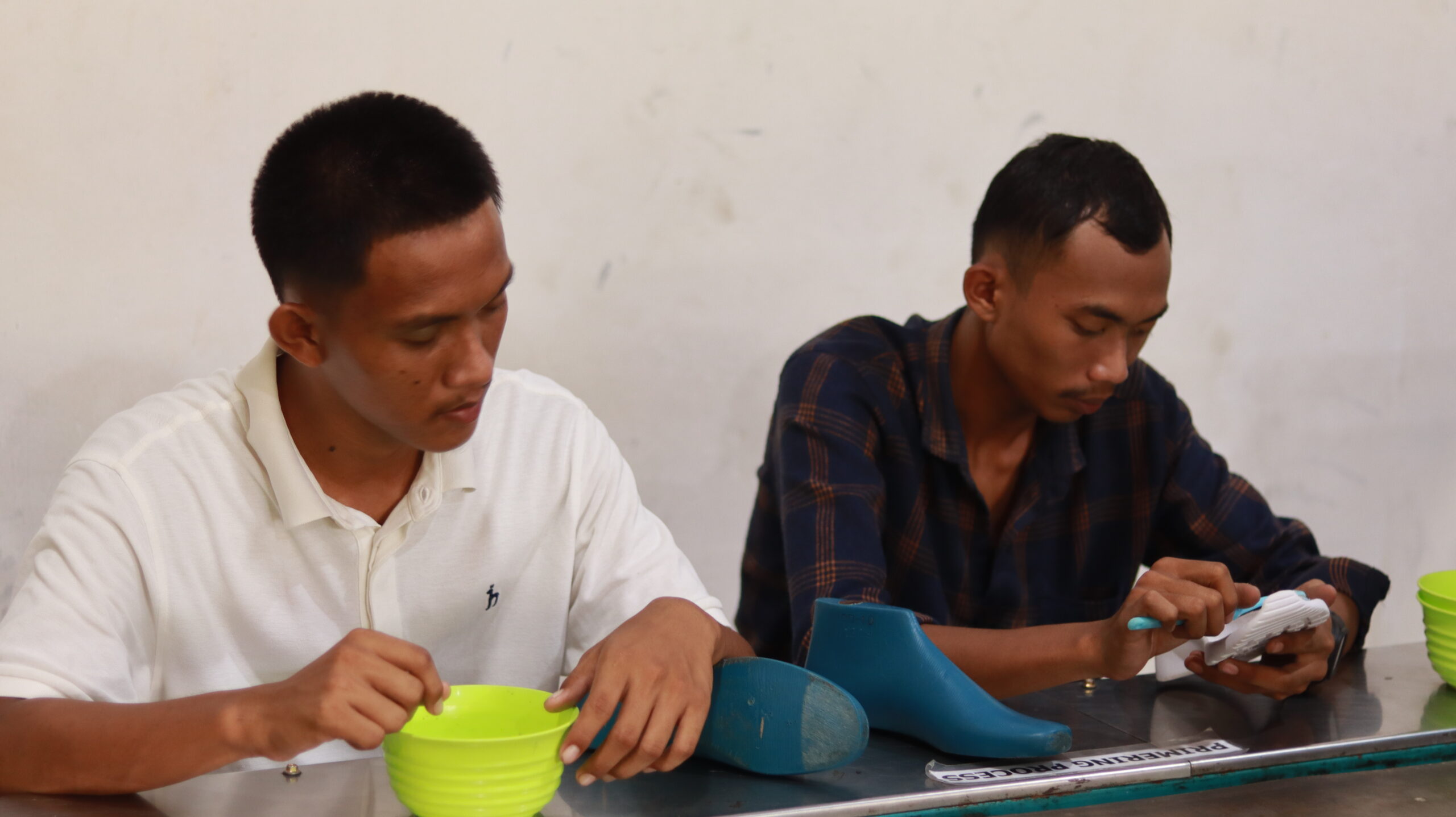 Menggabungkan bagian-bagian dari bottom sepatu, yaitu antara midsole dan outsole sampai terbentuk menjadi bottom sepatu